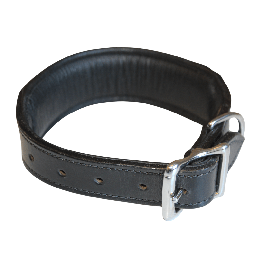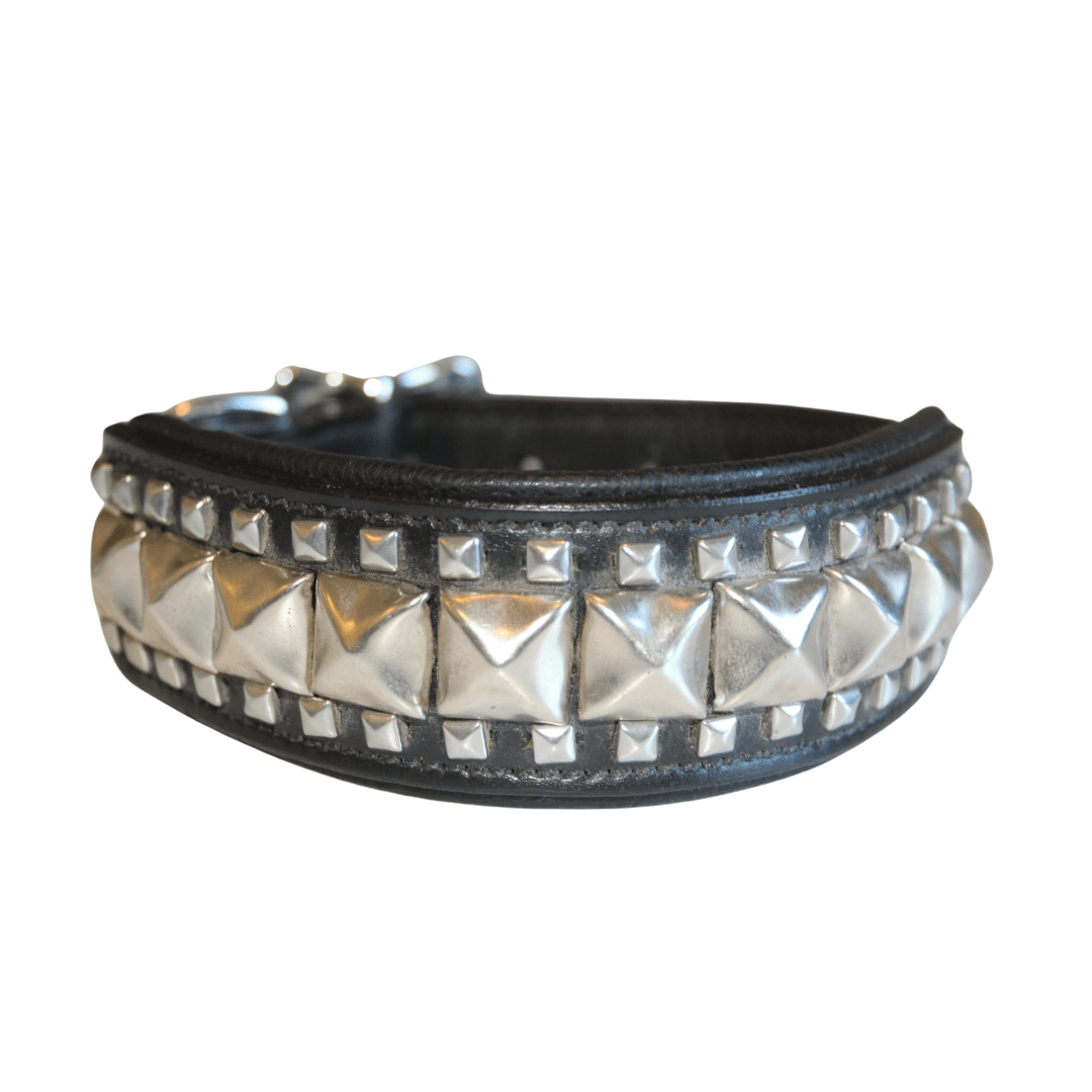 Kraftigt läderhalsband med nitar i 3 rader ca 27-35 cm långt och 4,3 cm brett