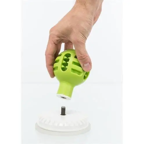 Lick’n’Snack Ball har en sugkopp som du enkelt fäster på olika ytor så att leksaken inte rullar iväg när hunden slickar på den.
